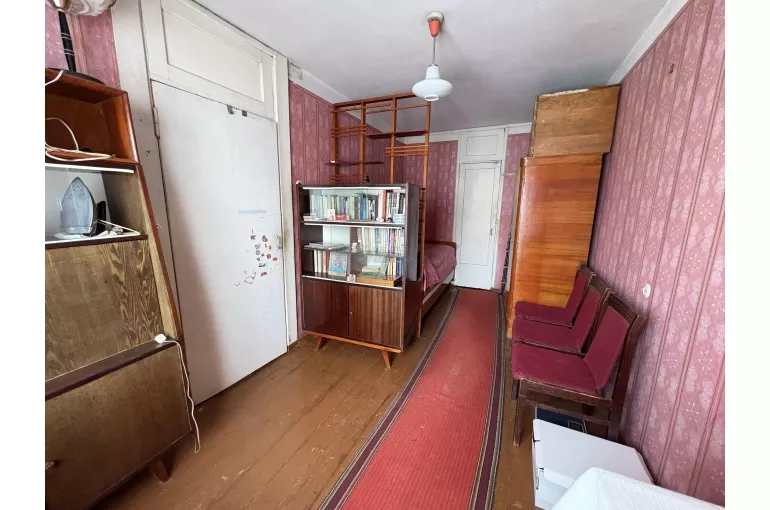 Квартира, не угловая, не торцевая, комнаты смежные 18 и 12 кв.м. планировка позволяет изолировать комнаты на этапе ремонта, есть кладовая в комнате, зал  с выходом на балкон (застеклен), небольшая кухня 6 кв.м., центральное горячее водоснабжение (без газовой колонки), с/у совмещен и отделан кафелем, современная входная дверь.