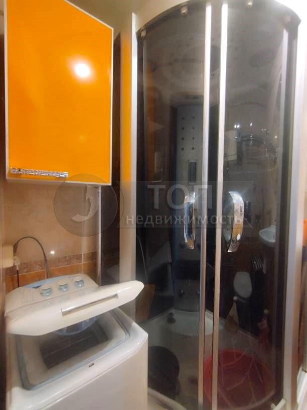 Также справа от входа расположен совмещённый санузел, укомплектованный душевой кабиной, стиральной машиной автомат.