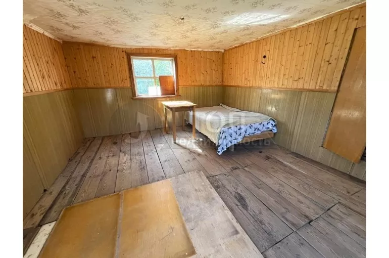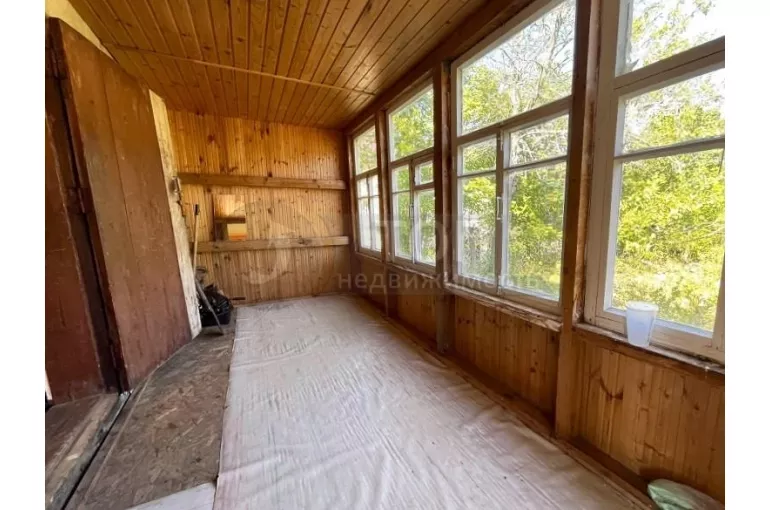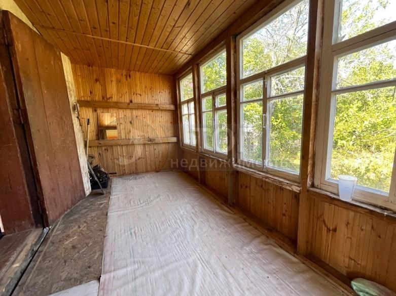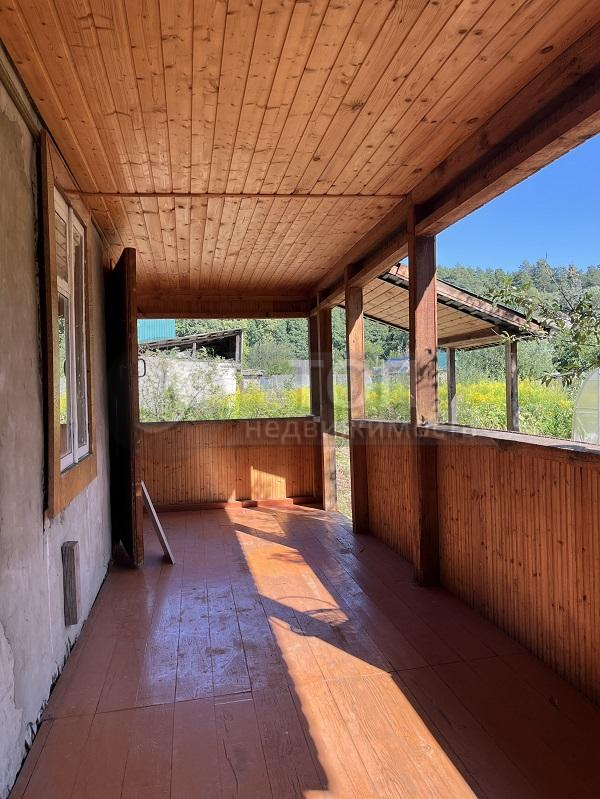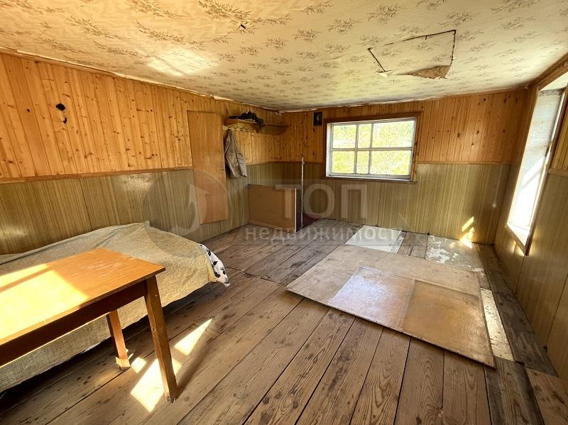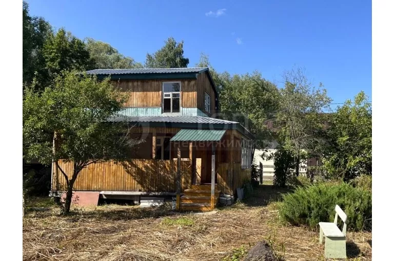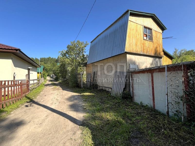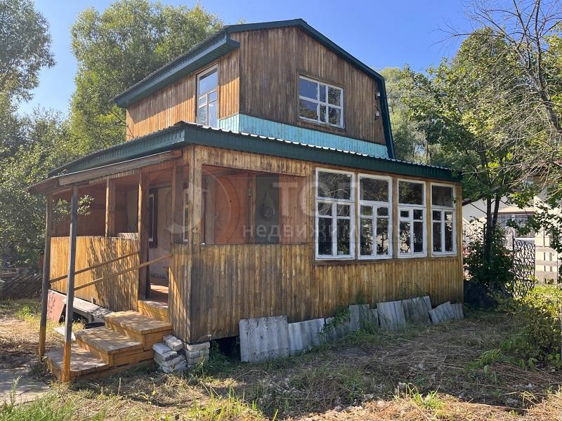 Садовый дом деревянный, в 2 этажа, общей площадью 33 кв.м. с пристроенной террасой. Дом в нормальном состоянии, пригоден для пользования в дачный сезон. Недавно обновлена крыша.