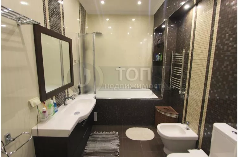 В ДОМЕ КАЧЕСТВЕННЫЙ ДОРОГОЙ РЕМОНТ – все стены и полы идеально ровные, везде качественные пластиковые окна, тяжелая металлическая входная дверь, дорогие межкомнатные двери, дорогая металлическая лестница с дубовыми ступенями, двухуровневые потолки, на стенах декоративная штукатурка и качественные обои, на полу в холле и на кухне – керамогранит, в комнатах – паркетная доска, оба сан. узла отделаны дорогим кафелем, вся сан. техника премиум-класса, медная электропроводка, везде кондиционеры, все трубы пластиковые, современные биметаллические радиаторы отопления с регуляторами, кованые металлические ограждения на лестницах и на лоджии.