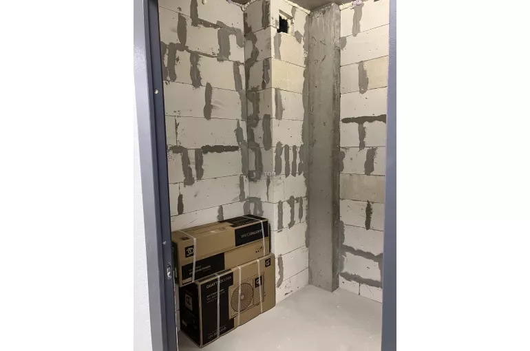 Приобреталась у застройщика по ДДУ со счетом эскроу. Кладовка с черновой отделкой, электр.счетчик, расположена в общем тамбуре на этаже.