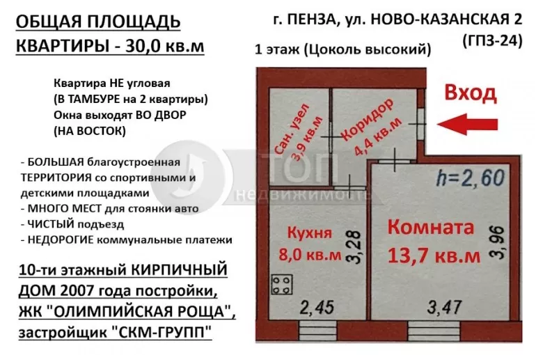 ВСЕ ОБЪЕКТЫ от Компании «ТОП НЕДВИЖИМОСТЬ» являются ЭКСКЛЮЗИВНЫМИ, то есть их НИКТО больше НЕ продаёт.
