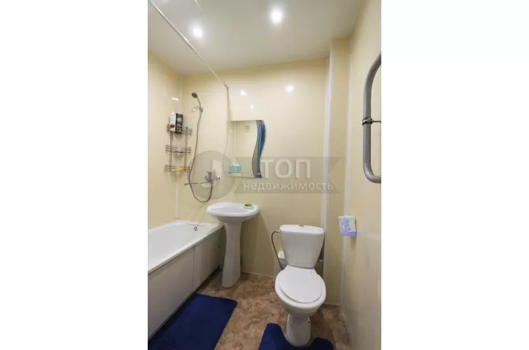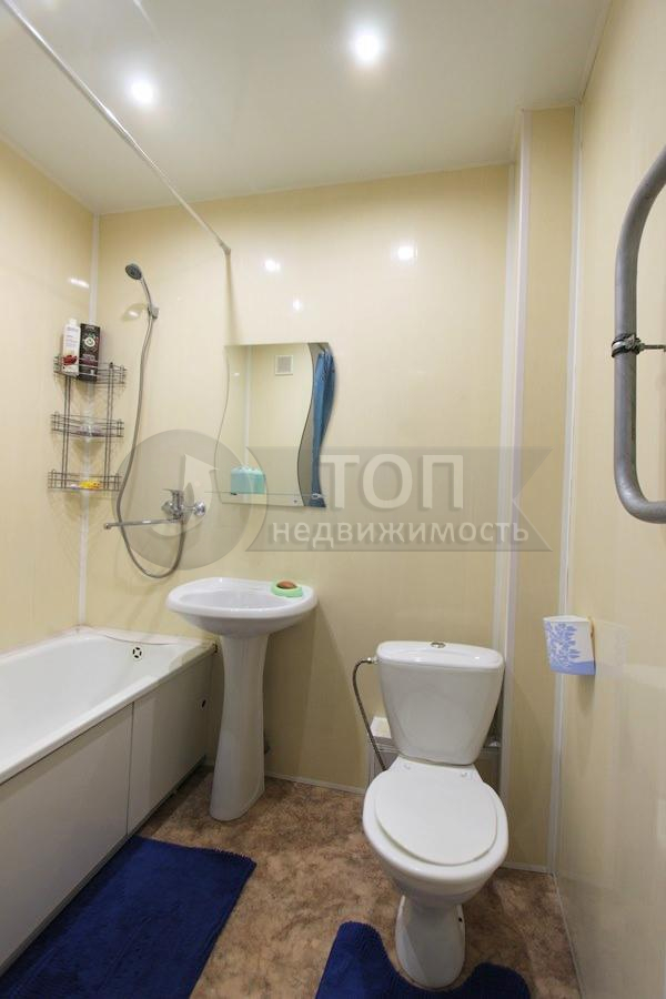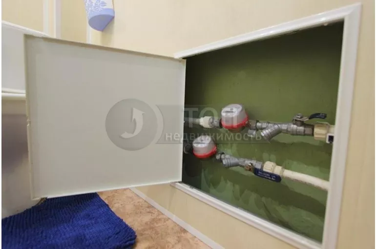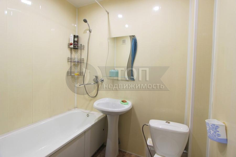 Квартира в ХОРОШЕМ СОСТОЯНИИ, пластиковые окна (кроме двери на балкон), тяжёлая металлическая входная дверь, межкомнатные двери простые (но аккуратные), полы бетонные, сверху линолеум, чистые обои и потолки, сан. узел отделан ПВХ панелями, нормальная сан. техника, все трубы пластиковые (включая стояки), счетчики холодной и горячей воды, чугунные радиаторы отопления, лоджия застеклена пластиковыми окнами.