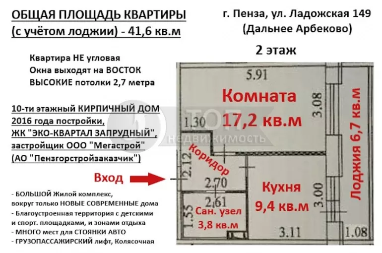 ТИП ДОМА: Кирпичный дом 2016 года постройки, ЖК «Эко-квартал Запрудный», застройщик ООО «Мегастрой» (АО «Пензгорстройзаказчик»).