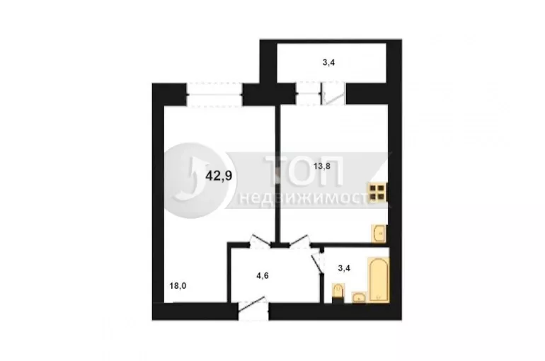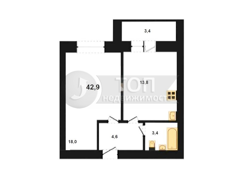 Общая площадь квартиры 39.5 кв.м (без учёта площади лоджии)