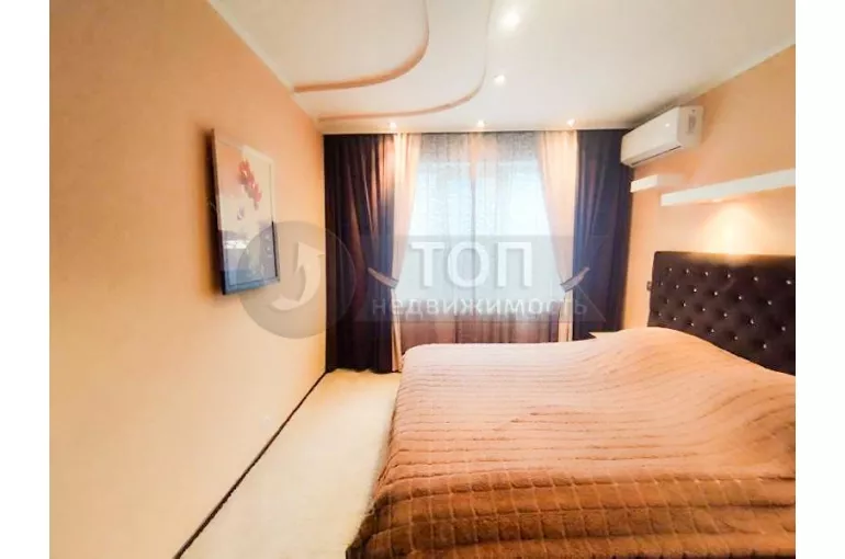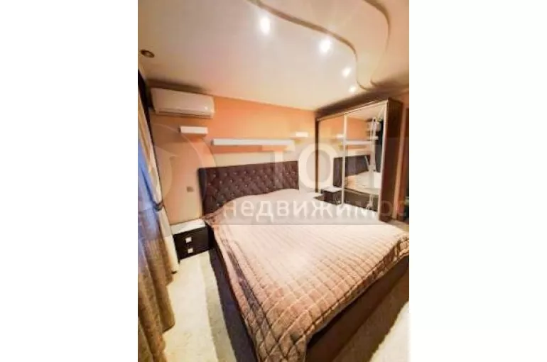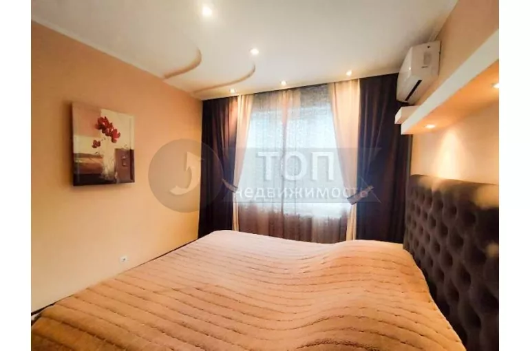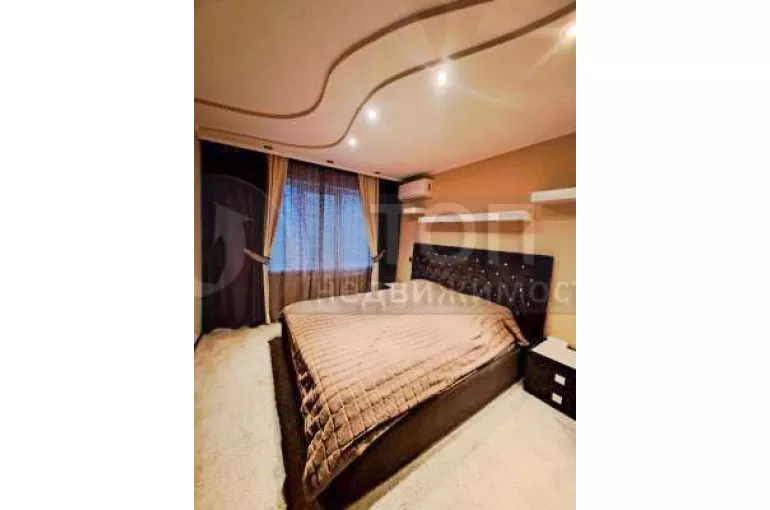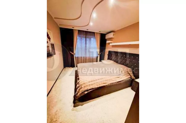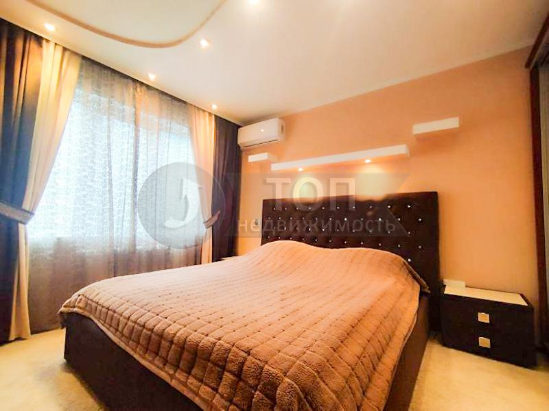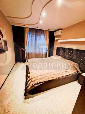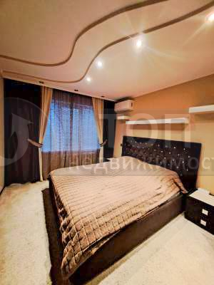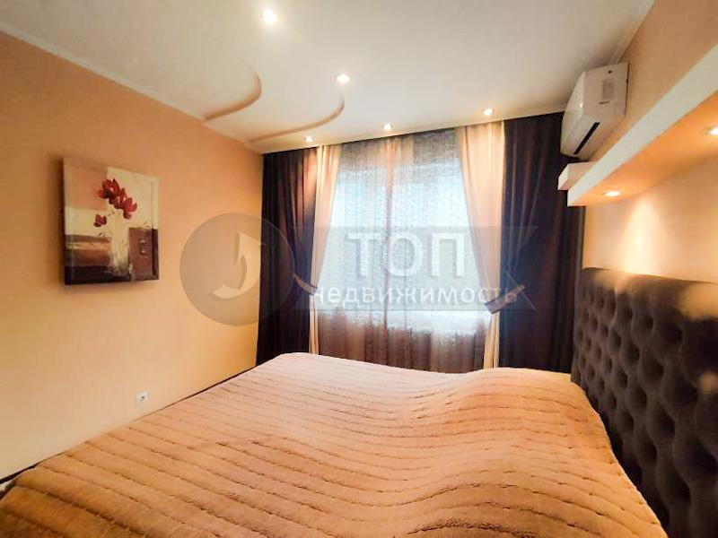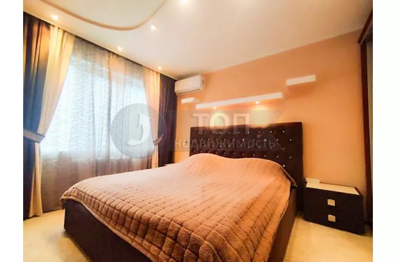 В спальне расположены БОЛЬШАЯ двуспальная кровать с ортопедическим матрасом, в которой есть вместительное место для хранения вещей, шкаф-купе, прикроватные тумбочки и КОНДИЦИОНЕР!