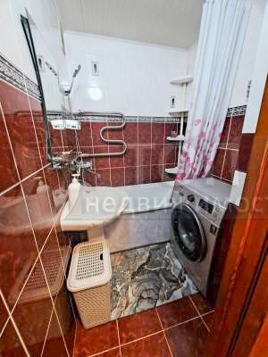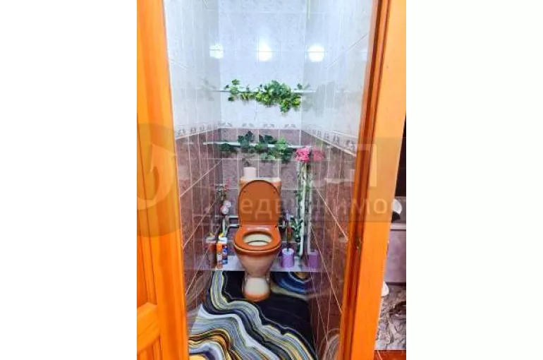 Справа от входа расположена еще одна кладовая и раздельный санузел. Санузел оснащен ванной, сантехника в рабочем ухоженном состоянии, также в ванной установлена автоматическая стиральная машина.